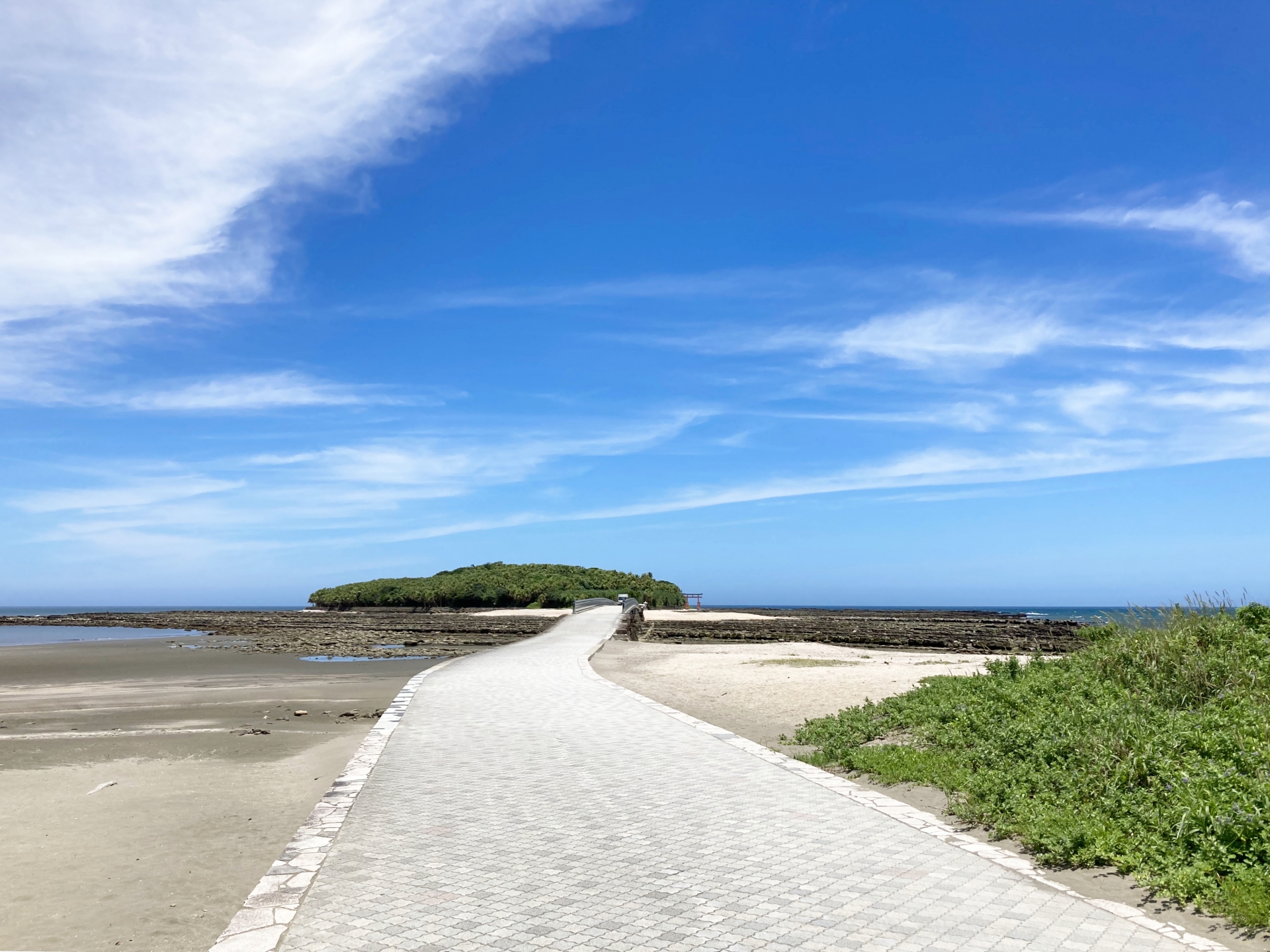 宮崎の定番観光スポットである青島神社は、島全体が境内とも言われる青島の中央に社があり、島にかかる弥生橋を渡って参拝することができます。ここは有名な神話「海幸彦・山幸彦」の舞台であり、山幸彦と豊玉姫が結ばれた地でもあることから、縁結びにご利益があると言われています。